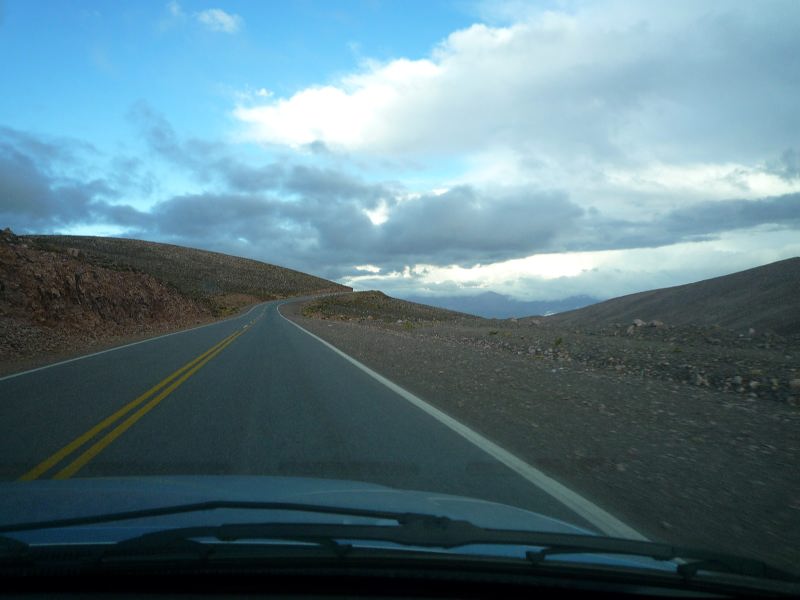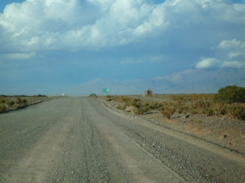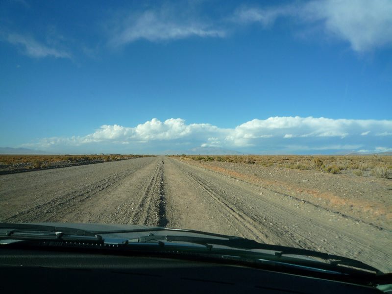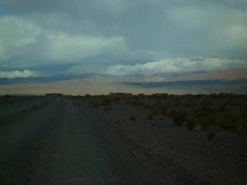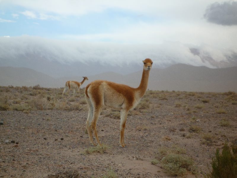 A guanaco. And a thick sandstorm coming. We drive slowly into the storm